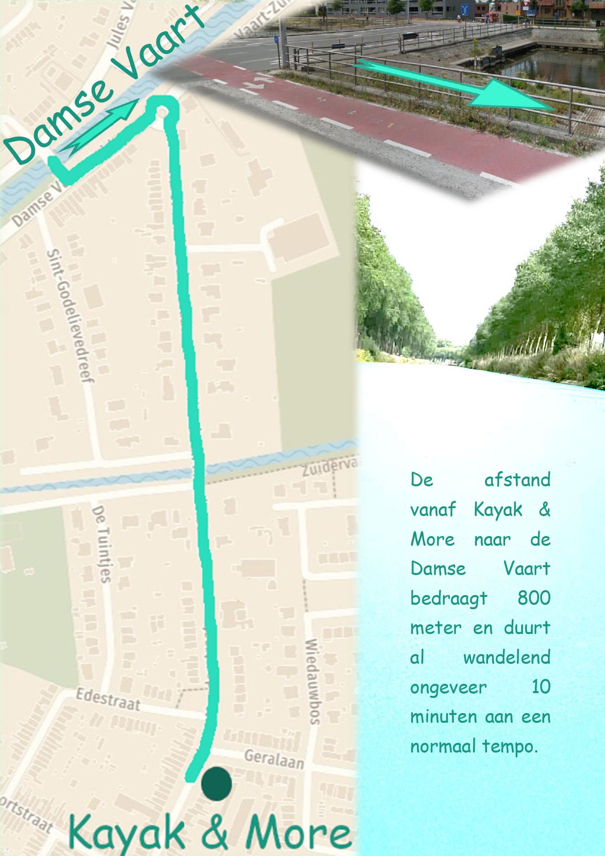 De kajak op de rug weegt 17kg. Vrij zwaar, gelukkig is de Damse Vaart niet ver.